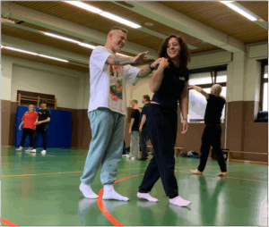 Die Teilnehmenden präsentierten schwungvoll ihre nonverbale Choreografie zum Thema „Individuum und Gesellschaft“, welche die Woche zusammenfasste und für viele ein bewegender Abschluss war.