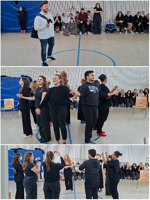 Die Teilnehmenden zeigten im Verlauf der Woche zunehmend Sicherheit darin, eigenständig Bewegungsfolgen zu entwickeln, in Kleingruppen zu arbeiten und gemeinsam eine Abschlussperformance zu erarbeiten. Durch den Schwerpunkt auf einfachen Mitteln – Körper, Stühle, Bilder – wurde eine für alle zugängliche Performance geschaffen, die eine politische Haltung vermittelte. Die Abschlussleistung fand großen Applaus des Publikums.
